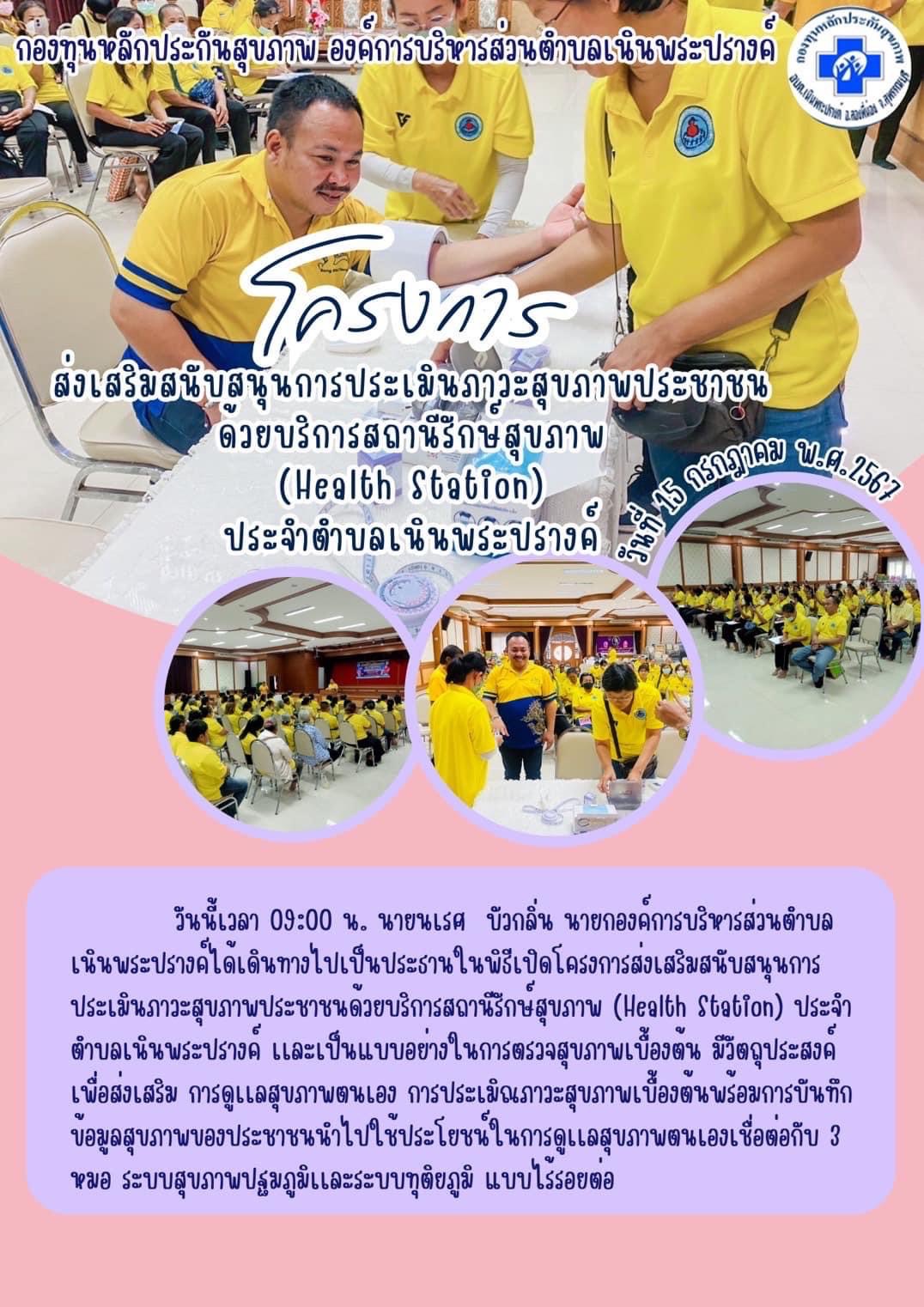 วันนี้เวลา 09:00 น. นายนเรศ บัวกลิ่น นายกองค์การบริหารส่วนตำบลเนินพระปรางค์ได้เดินทางไปเป็นประธานในพิธีเปิดโครงการส่งเสริมสนับสนุนการประเมินภาวะสุขภาพประชาชนด้วยบริการสถานีรักษ์สุขภาพ (Health Station) ประจำตำบลเนินพระปรางค์ เเละเป็นแบบอย่างในการตรวจสุขภาพเบื้องต้น มีวัตถุประสงค์เพื่อส่งเสริม การดูเเลสุขภาพตนเอง การประเมิณภาวะสุขภาพเบื้องต้นพร้อมการบันทึกข้อมูลสุขภาพของประชาชนนำไปใช้ประโยชน์ในการดูเเลสุขภาพตนเองเชื่อต่อกับ 3 หมอ ระบบสุขภาพปฐมภูมิเเละระบบทุติยภูมิ แบบไร้รอยต่อ