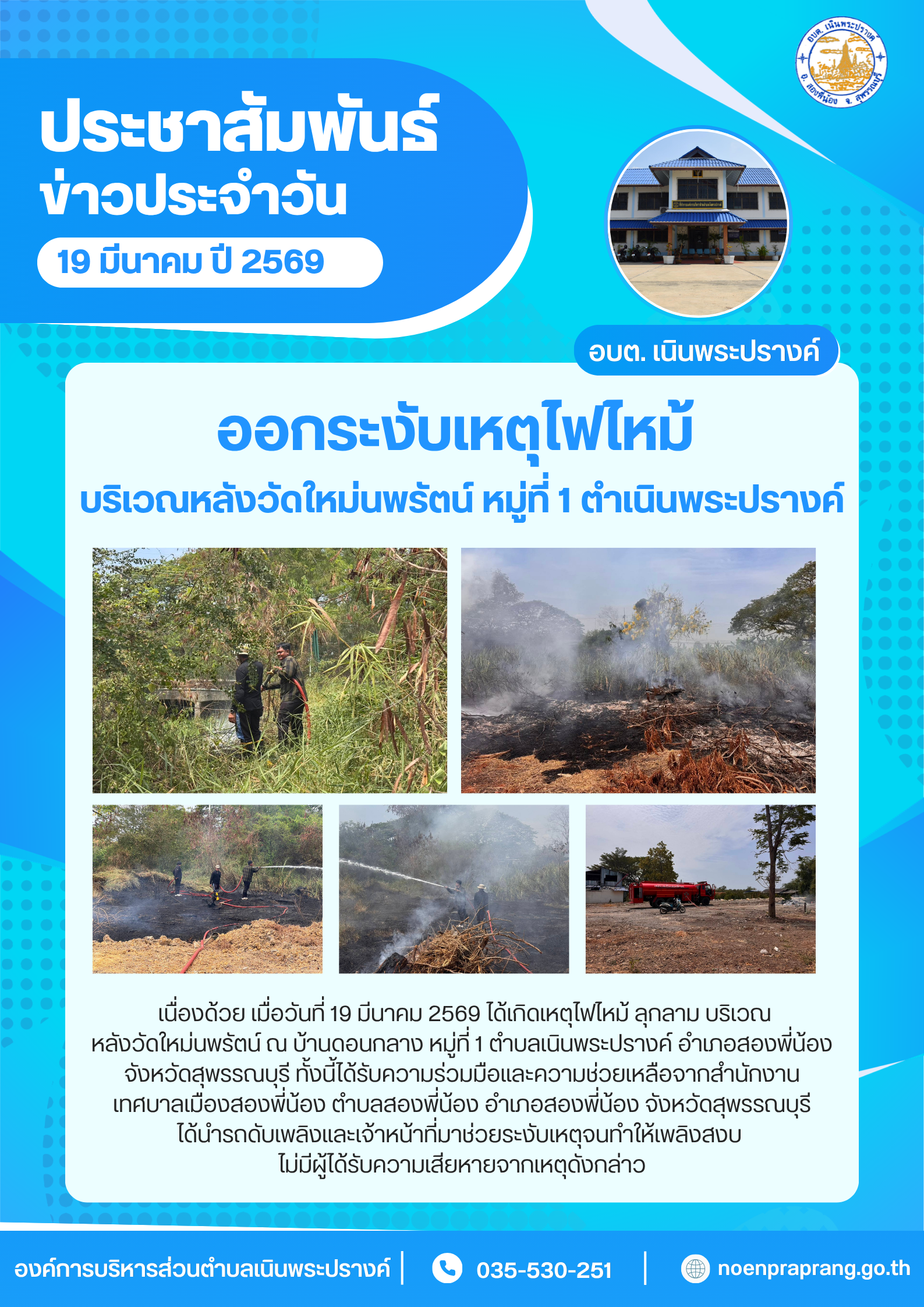 ข่าวประชาสัมพันธ์ ออกระงับเหตุไฟไหม้ บริเวณหลังวัดใหม่นพรัจน์ หมู่ที่ 1 บ้านดอนกลาง