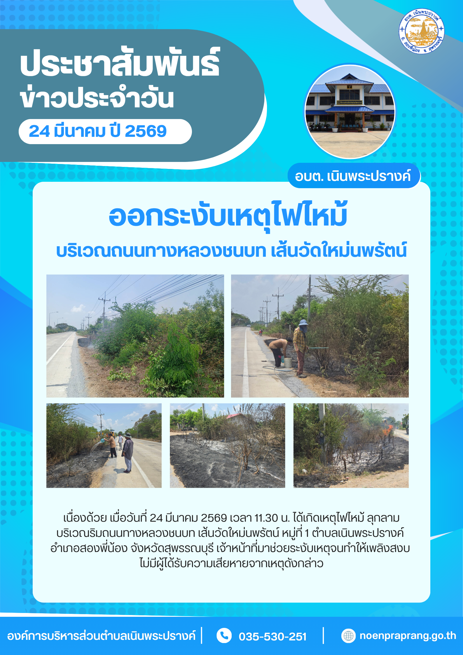 หน้าแรก » ข่าวกิจกรรม & ประชาสัมพันธ์ » ข่าวประชาสัมพันธ์ ออกระงับเหตุไฟไหม้ บริเวณถนนทางหลวงชนบท เส้นทางวัดใหม่นพรัตน์