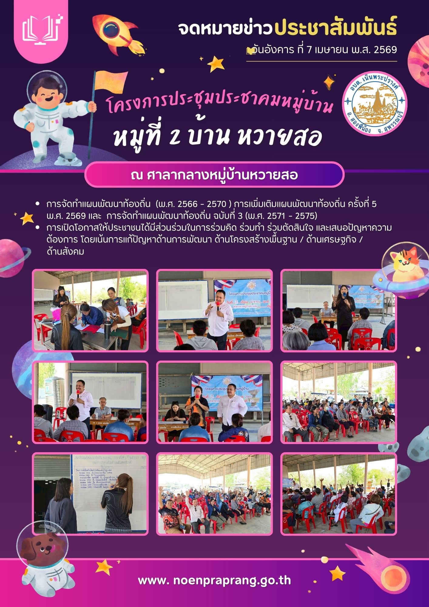 หน้าแรก » ข่าวกิจกรรม & ประชาสัมพันธ์ » ข่าวประชาสัมพันธ์ โครงการประชุมประชาคมหมู่บ้าน หมู่ที่ 2 บ้านหวายสอ